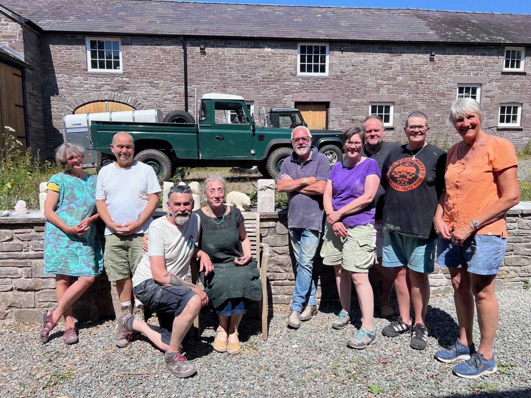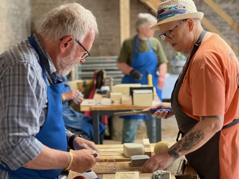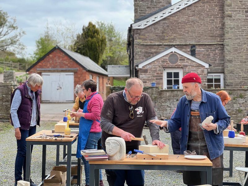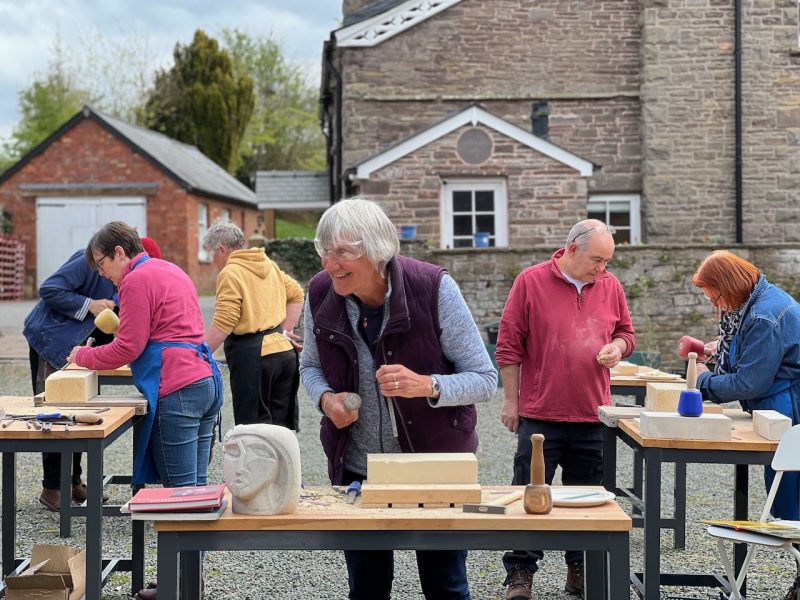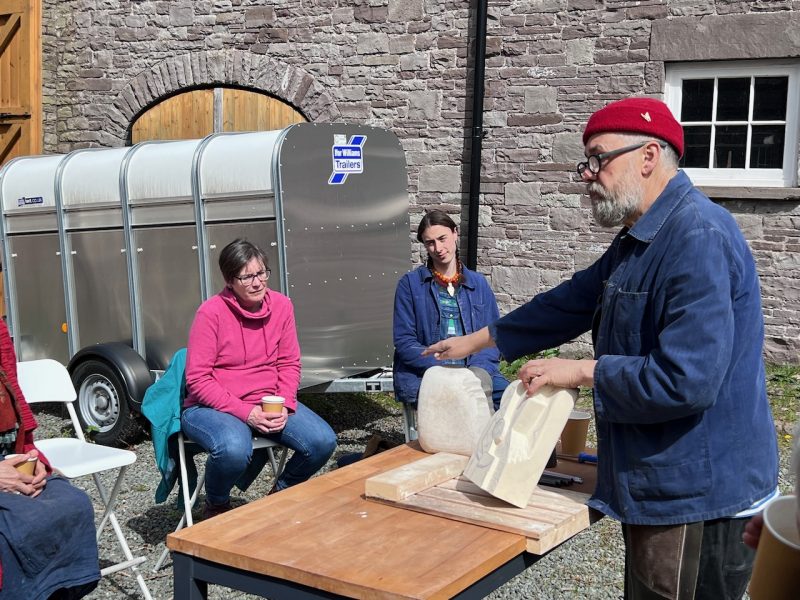 We are thrilled to have just finished our first stone carving course for people in our community undergoing treatment for cancer. As ever, all kinds of wonderful elements came together to make for a special experience. A local farmer kindly offered us the use of his courtyard with sublime views over the Brecon Beacons. The Bracken Trust helped to promote the course. The D’Oyly Carte Foundation helped us to pay for it. And Matt Caines, a hugely experienced local stone carver and sculptor designed and ran the course.