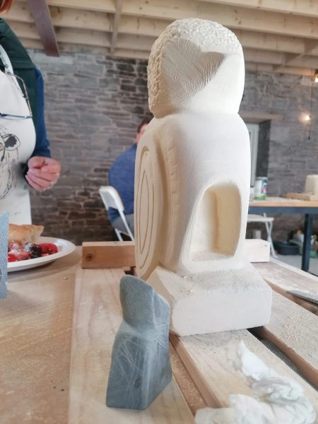 “I found it quite emotional writing this as Fathom has had a really positive affect on my current situation.” I had no experience at all of stone carving and really didn’t know what to expect. The passion and knowledge of the tutor and the supportiveness and kindness of the group meant these sessions have been a real highlight to my week. It’s been an opportunity to lose myself in something I didn’t know I could do. Having a whole day each week, I feel, meant that we could spend time chatting to each other, listening to each other’s fears and current situations as well as be listened to ourselves, by people in a similar ‘boat’, as well as working on our stone projects. As the weeks went on many of us had to be torn away from our carvings for the morning coffee break and lunch! And what lovely lunches and treats they were – thank you to the volunteers who organised this side of things. The beautiful location of the workshops and the ability to work inside or outside also added to a feeling of calm and contemplation.”